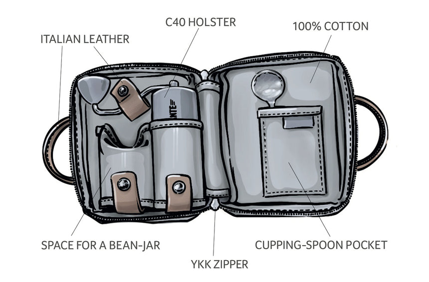There is also a handy pocket for other accessories like your cupping spoon and cleaning brushes.